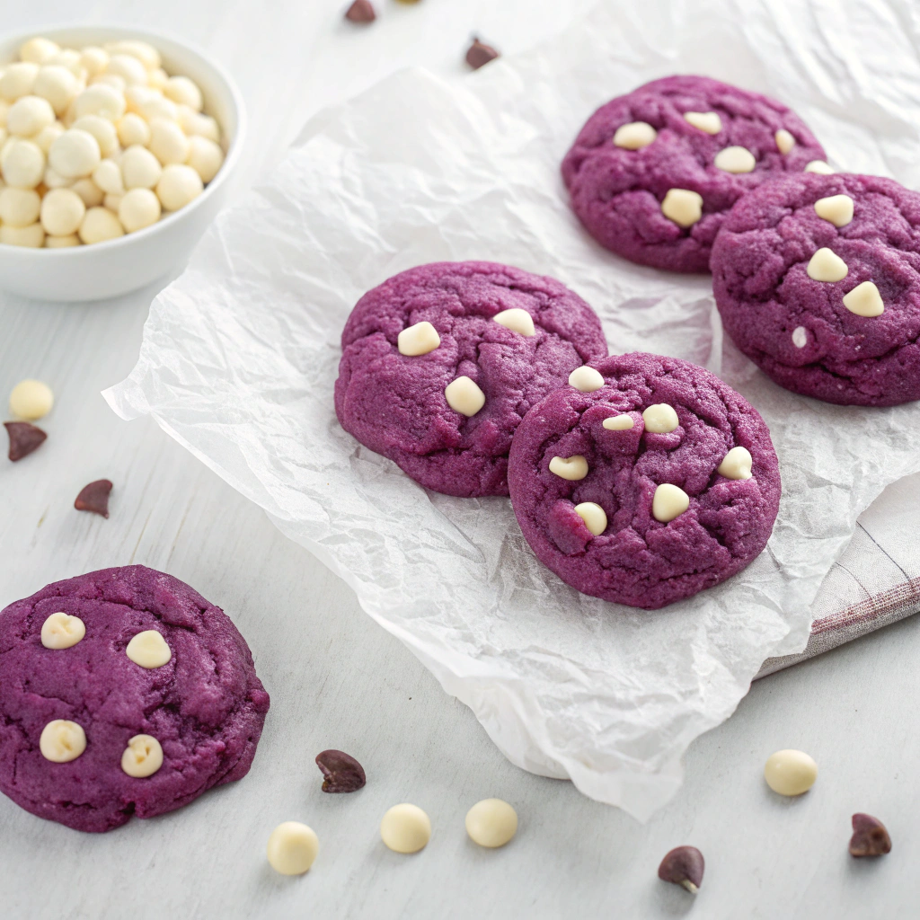 Soft & Chewy Ube White Chocolate Chip Cookies