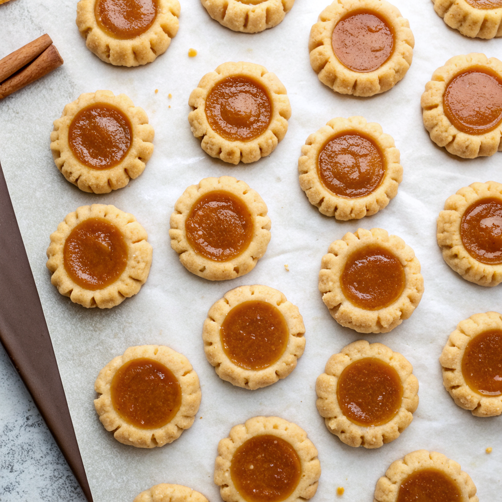 10. Fill with Pumpkin Mixture Carefully spoon about 1 tablespoon of the pumpkin pie filling into each indentation. Fill them generously but don’t overfill—the filling should sit just below the rim of the cookie dough. A small offset spatula or spoon works well for this step.